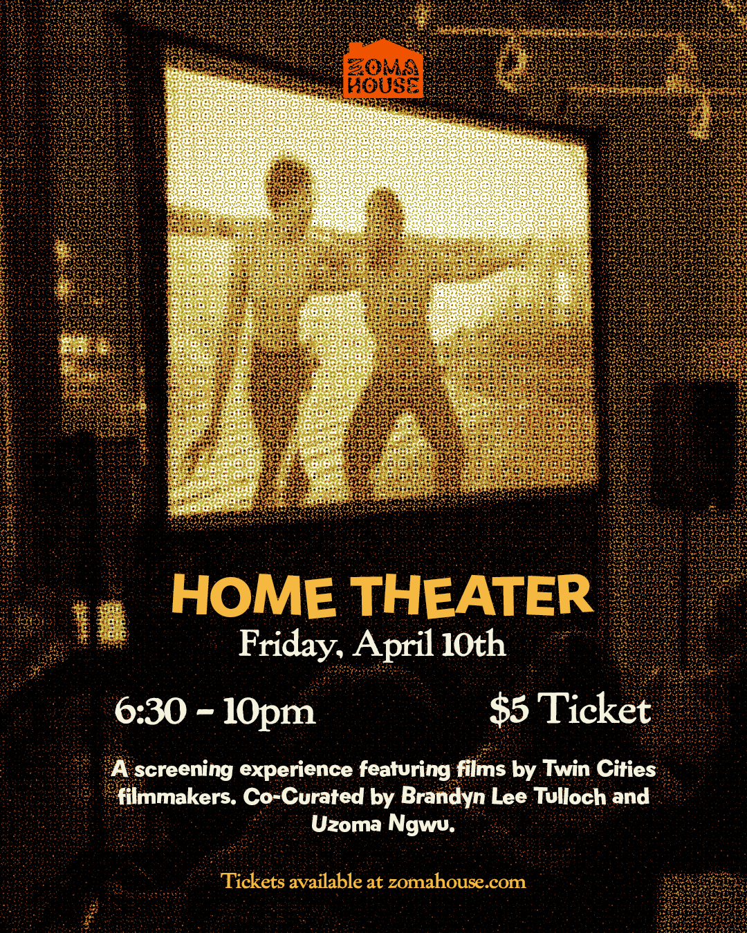 Back to All Events Home Theater Friday, April 10, 2026 6:30 PM 10:00 PM Google Calendar ICS Home Theater is a screening series that takes place every other month. Each screening features the work of local filmmakers followed by an audience Q&A. The selected films will be revealed closer to the event date. BUY TICKETS HERE